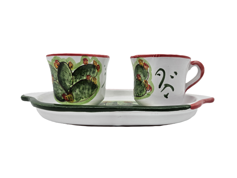 Set tazzine da caffè in Ceramica Artigianale di Caltagirone con decorazione Fichi d’India - Un Momento di Gusto e Tradizione