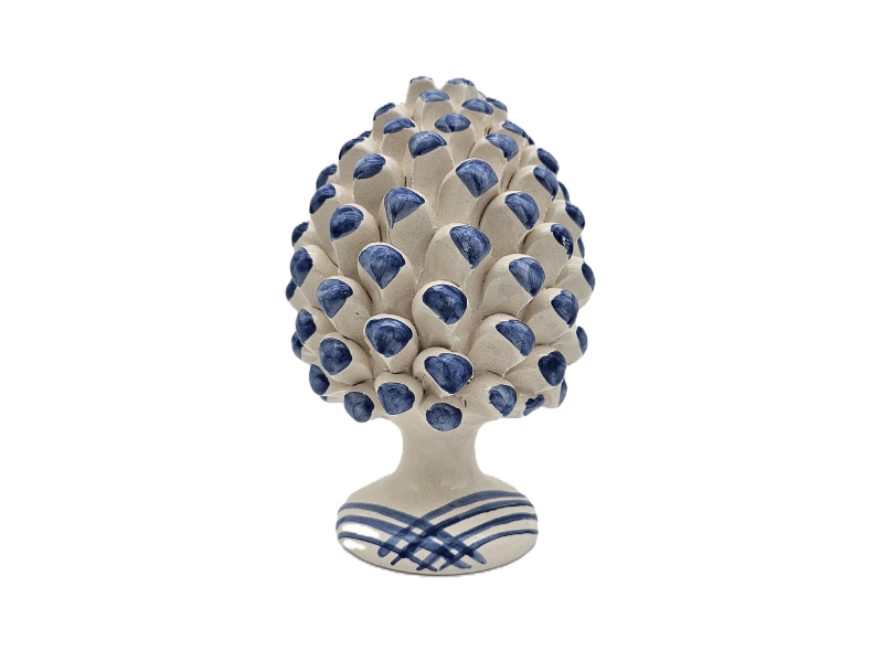 Pigna in ceramica artigianale di Caltagirone bianca e blu h 25